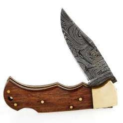 RILL SIMPLE TOOLS Rill Woody Damascus Folding Skinner W/sheath 017