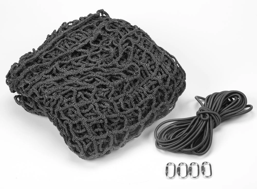 1.5”x1.5” Heavy strength braided rot-resistant polypropylene with 4 carabineers and bungee.