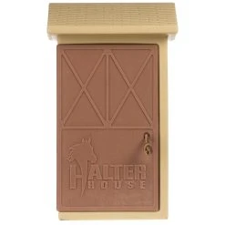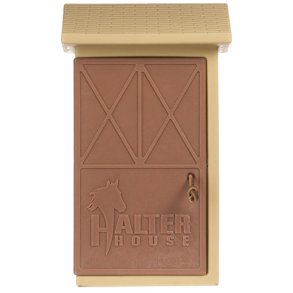 The Halter House keeps your halters, lead ropes, bridles, fence chargers or miscellaneous tack & supplies dry, and protected from the elements. Hinged door easily swings open by pulling the leather handle. Three double hooks give you multiple storage options. Hanging on a rail fence is easily accomplished with the provided mounting brackets. The Halter House can also be secured directly to a flat wall with lag screws and washers. The durable, UV protected, Poly construction ensures the Halter House will stay looking great for years to come.