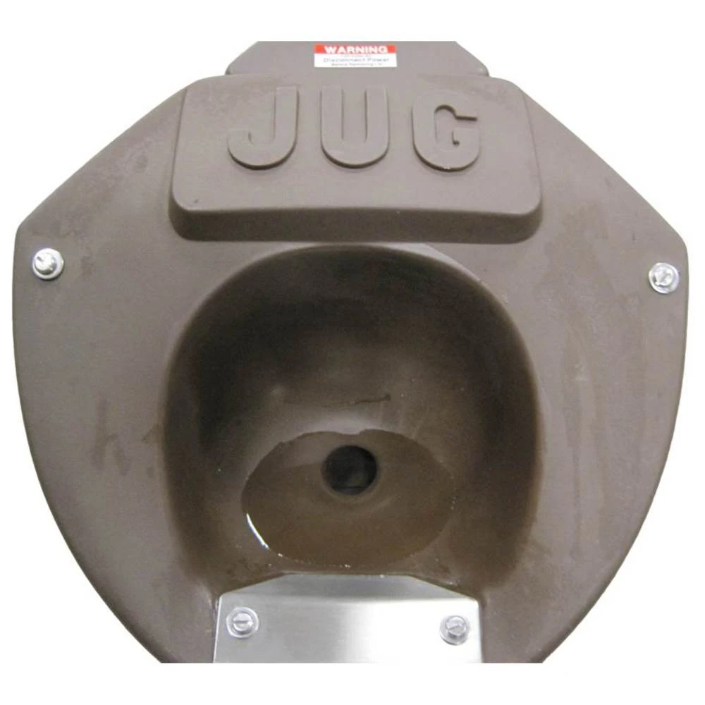 It all starts with the “Draw Tube” which is a unique design for supplying the animal with water. The Draw Tube is attached to the drinking bowl with a Feed Trap which keeps feed debris from the animal’s mouth out of the reservoir. The animal places its mouth in the open pool of water over the opening in the drinking bowl and sucks up the water just as it would drink from a natural water source. Patented technology of 3 internal tubes circulate water from bowl to reservoir for a constand temperature. An internal, pilot-operated float valve which is adjustable from the outside of the JUG, automatically keeps the water at the determined level.