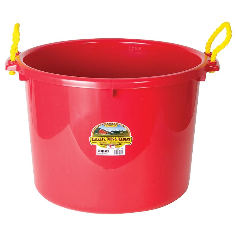 The perfect solution to a never-ending problem! The Little Giant 70-Quart Muck Tub can help you handle big or small cleanup jobs with ease. The ample mouth size lets you load it up fast, and the poly rope handles are strong and comfortable. Made from high-density polyethylene to protect against warpage and help prevent stress cracks. 21.75 inch diameter (exclusive of handles) by 17.25 inch high, holds 70 quarts (17.5 gallons).
