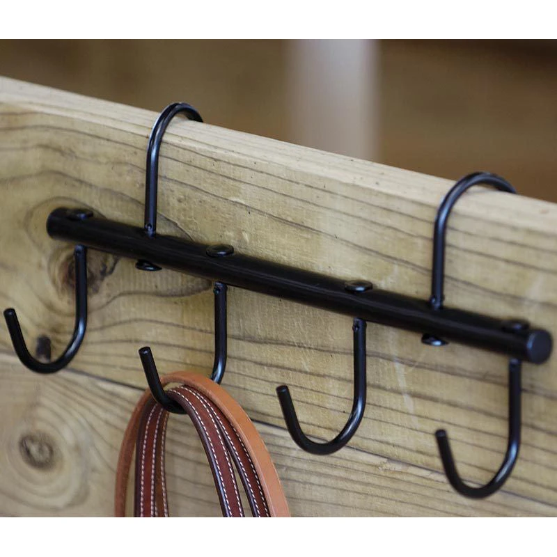 Tack Rack welded steel rack perfect for keeping bridles or halters organized. Portable design allows it to hang over a stall wall or the side of a trailer. Hooks fold back flat when not in use.
