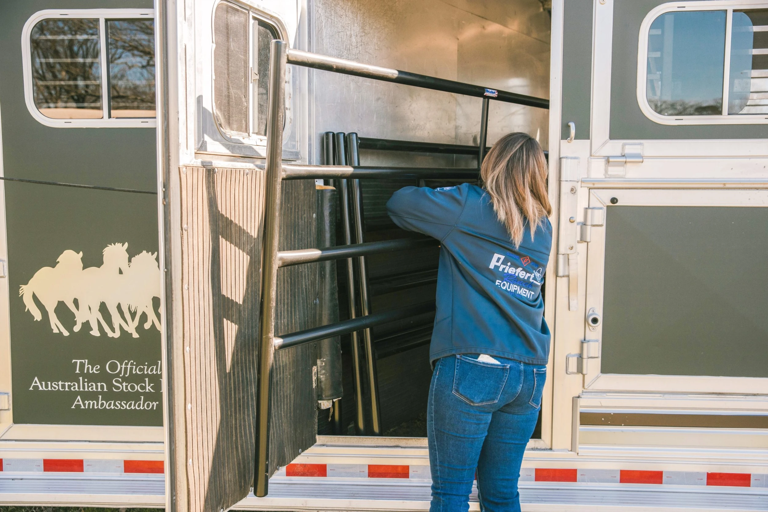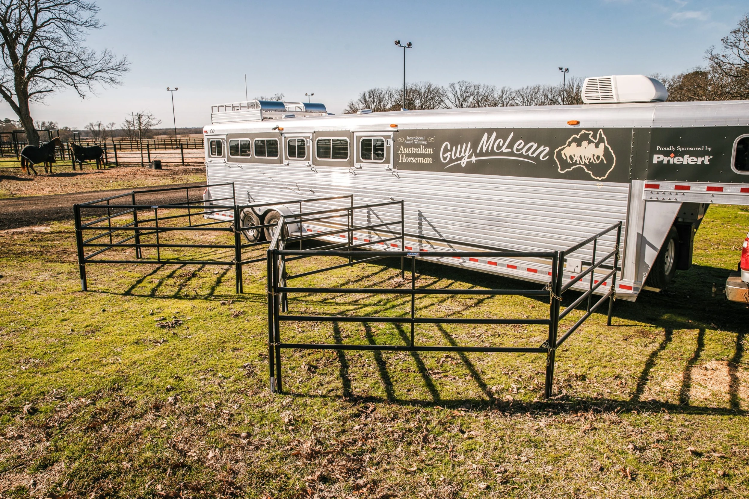 Priefertโs Trailer Panel is ideal for temporary housing of horses while on the road at events. This four-rail panel stands 50.5 inches tall and is great for use with horses that are cooperative and accept confinement. At just under 8โ long, these panels are designed to fit into the slant of a horse trailer or in an 8โ hay rack for easy transport. These panels feature a single piece vertical stay fitted through drilled rails to provide additional strength and structural integrity. The straight legs are balled on each end, sealing the tubing completely from the elements. This lightweight panel is easy to move around, and chain connectors allow for quick, tight connections between panels and gates that help eliminate dangerous foot traps. Chain connectors also offer increased versatility for connecting to panels over uneven ground and allow for easy connection to existing structures. The Architectural Grade Powder Coat Finish helps the product to resist rust, scratches, and fading to add years of life to your investment.