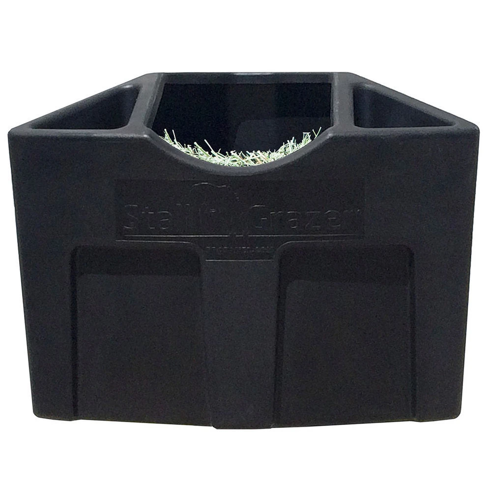 Stall Grazer 3-in-1 horse feeders are designed to sit at ground level and allow your horses to eat comfortably with their head down and teeth aligned in a natural grazing position the way nature intended.