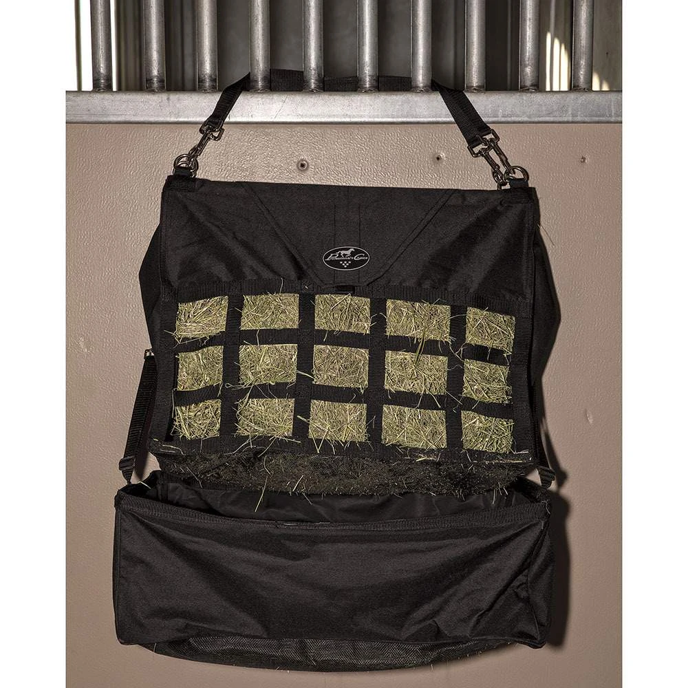 This Professional’s Choice Folding Combo Hay Feeder is a medium feed hay bag and feeder all in one! Designed for a combination of hay and pellets or grain. Top folds down for easy storage.