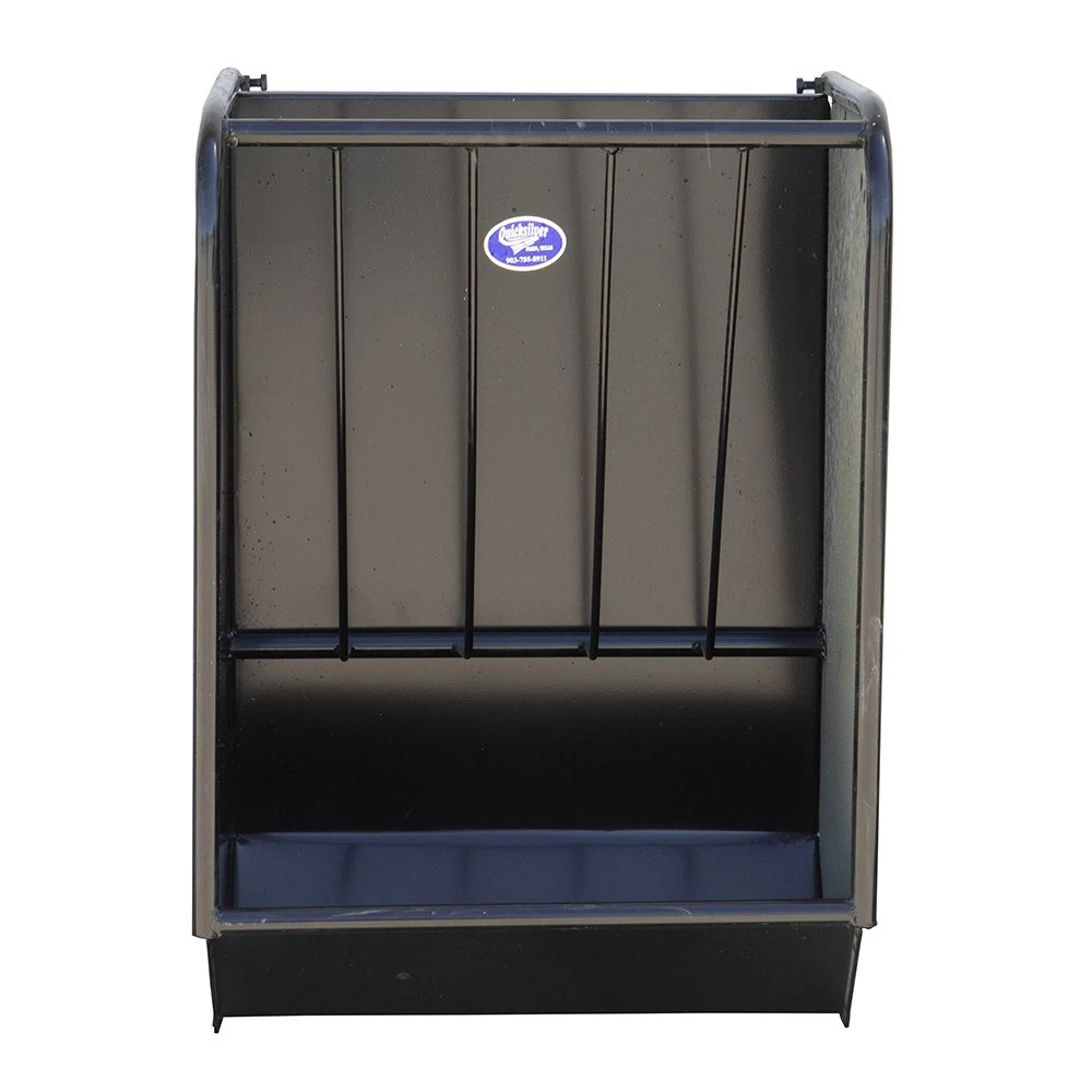 - Black hay and grain feeder for use in barns, outdoor paddocks and pastures