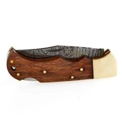 Take the right tools with you on your next adventure. Having the right gear, means having gear that does not fail. This brand of tool is for the American spirited adventurer! This is a folding clip point damascus blade knife made in Kemah, Texas, USA. This Woody Skinner Damascus clip point model is super sharp, it is made of damascus steel with a hardness of 1095 58; it is a liner lockback folding blade with a wood handle, leather sheath and tuning rod. This travel gear is great for hunting, fishing, camping or, as needed. Rill Simple Tools are manufactures of high quality outdoor tools and travel accessories. 017