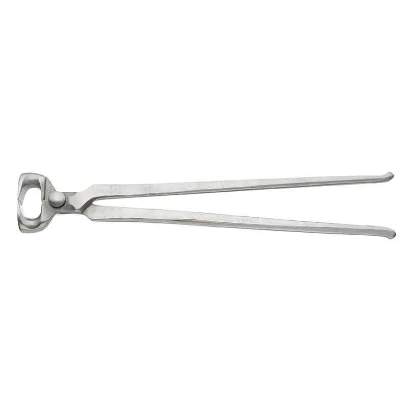 Designed to trim away excess hoof wall. The nipper head is smaller in design with a finer cutting edge than the regular 14” nipper. Farriers working on running and performance horses find this nipper works best. Drop forged from chrome vanadium steel. Cutting edge double beveled to eliminate nicking and bending. Aligned and sharpened by hand for accurate trimming and longer blade life. 14” handles. 2 ” wide x 1” deep head.