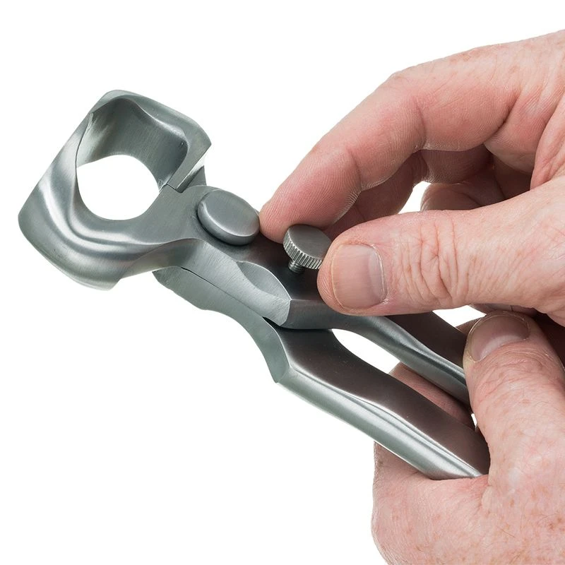 Designed to trim away excess hoof wall. The 14” nipper is considered the workhorse of the nippers. It is especially useful when working on hard hooves and great for all breeds. Drop forged from chrome vanadium steel. Cutting edge double beveled to eliminate nicking and bending. Aligned and sharpened by hand for accurate trimming and longer blade life. 14” handles. 2 ” wide x 1” deep head.
