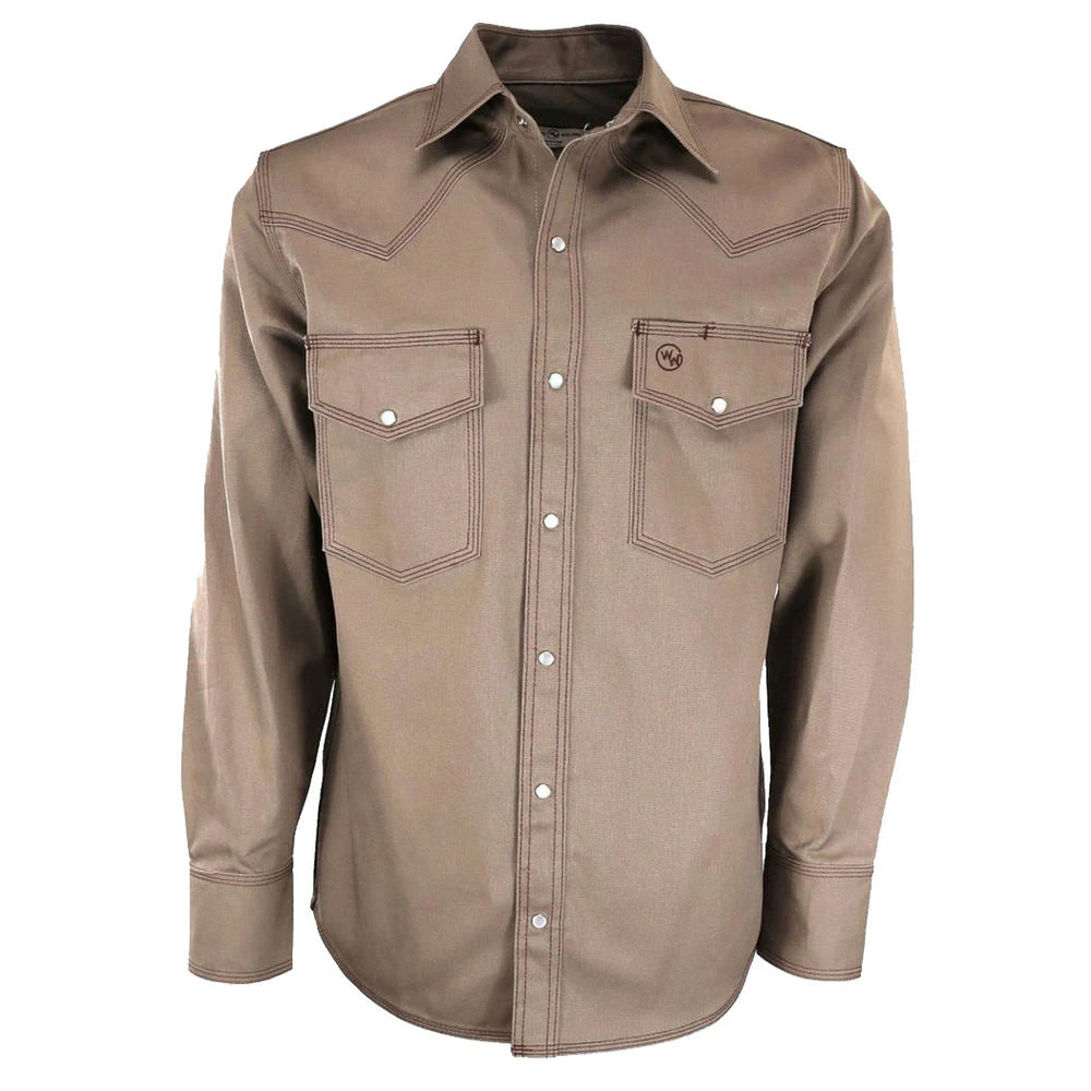 - Long sleeve, collared, front pockets with snap flap closure, snap cuffs